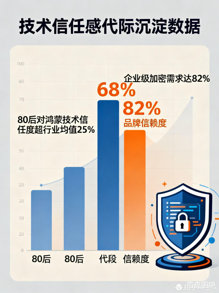 80后对华为品牌的信赖度达68%(00后仅38%),鸿蒙系统级安全防护成关键决策因素;
