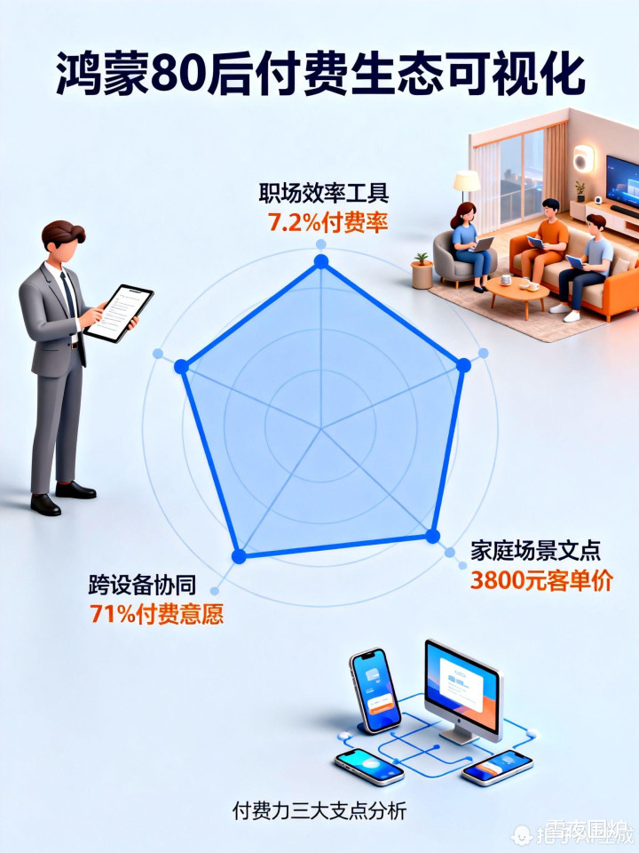 导语:当Z世代还在为鸿蒙的“兴趣标签”买单时,80后已悄然成为鸿蒙付费生态的中坚力量——他们用职场刚需和家庭场景的深度绑定,重构了国产操作系统的商业价值逻辑。